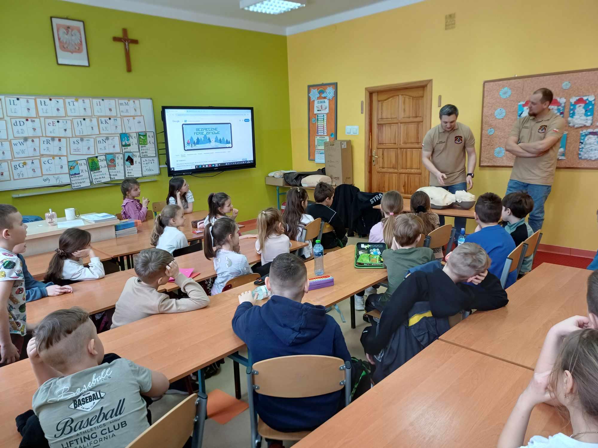 Dnia 10 lutego naszą szkołę odwiedzili druhowie z OSP w Bielsku. Podczas spotkania w klasach 1-3 strażacy przypomnieli zasady bezpiecznego zachowania się podczas zbliżających się ferii zimowych. Dzieci miały też okazję poćwiczyć zasady udzielania pierwszej pomocy.
