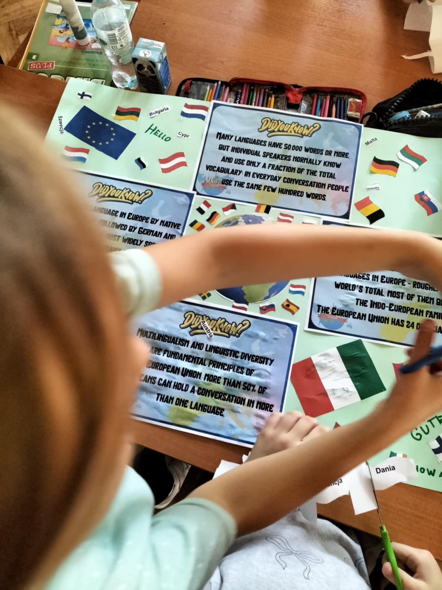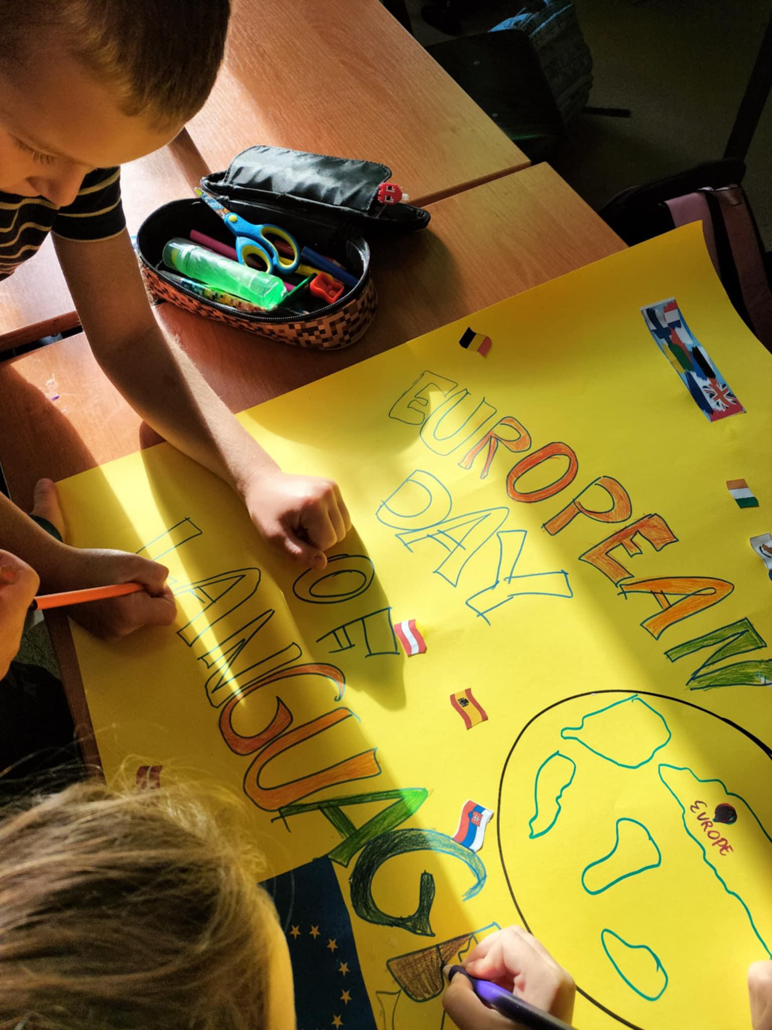 Nasza szkoła obchodziła po raz kolejny Europejski Dzień Języków. Z tej okazji uczniowie klas I - III wykonali flagi krajów europejskich oraz plakaty związane z tym dniem. Klasy IV - VIII rozwiązywali zagadki oraz rebusy ukryte w różnych miejscach w szkole. Zadania przygotowane zostały w języku niemieckim i angielskim