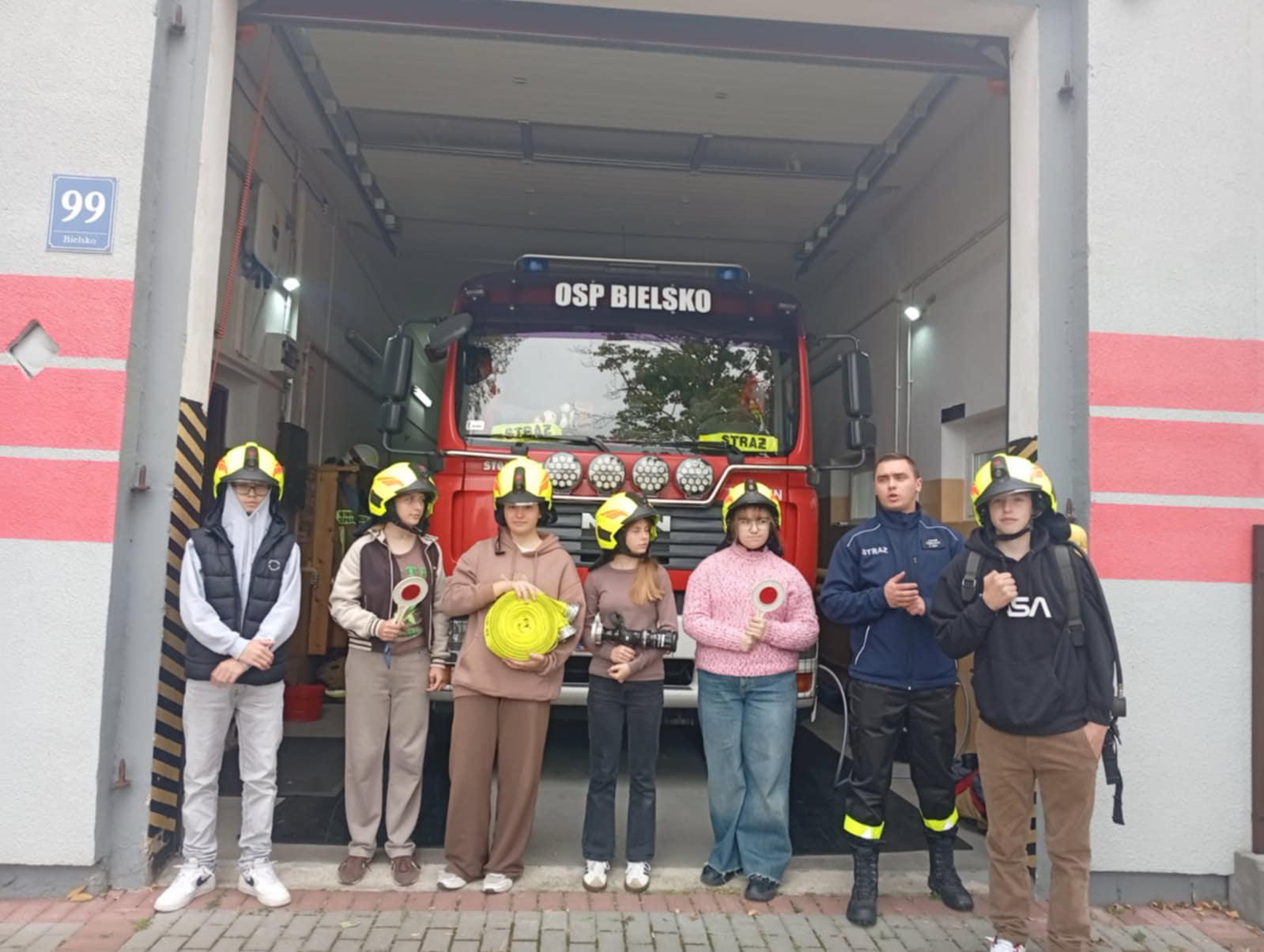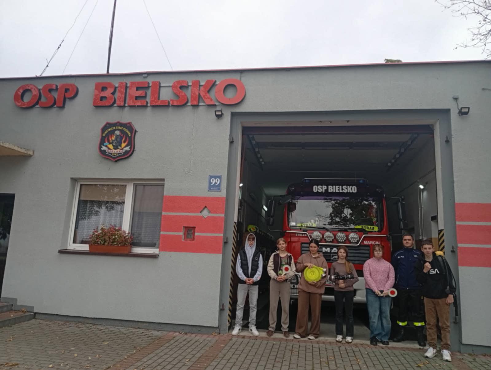 Dnia 30 września w ramach zajęć z Edukacji dla bezpieczeństwa, uczniowie klasy VIII odwiedzili Ochotniczą Straż Pożarną w Bielsku. Podczas wizyty młodzież mogła zapoznać się z zasadami postępowania na wypadek powstania pożaru lub innego zagrożenia. Uczniowie mieli okazję zobaczyć wóz strażacki wraz z całym wyposażeniem, sprzęt gaśniczy i strój w jaki strażacy ubierają się do akcji. Dziękujemy Panu Jakubowi Tomczakowi za bardzo ciekawą prelekcję na temat bezpiecznych zachowań i zapobiegania sytuacjom zagrażającym życiu człowieka.