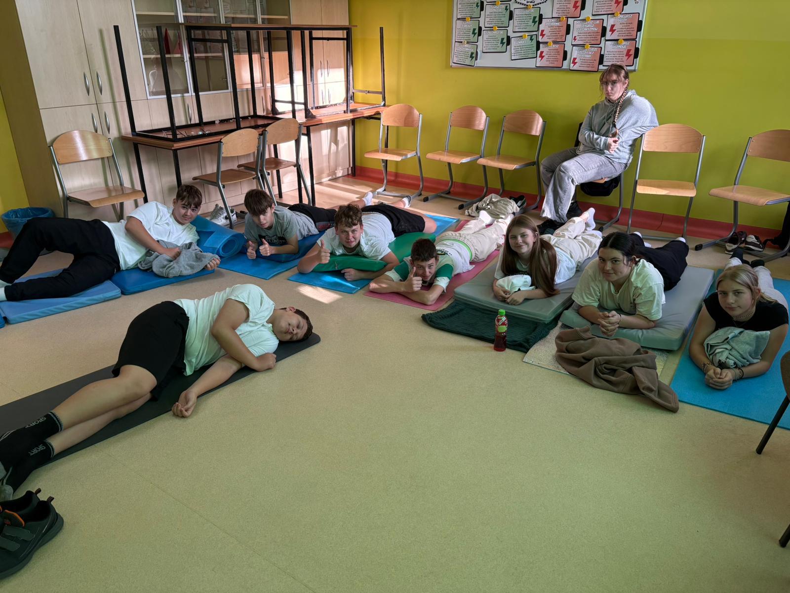 W dniu dzisiejszym obchodziliśmy w naszej szkole Dzień Zdrowia Psychicznego z tej okazji uczniowie wzięli udział w warsztatach i zajęciach ze specjalistami. Podczas spotkania poruszane były następujące tematy: psychoedukacja-zdrowie psychicznie w praktyce, trening personalny, jedzenie dla mózgu- jak odżywianie wpływa na nasze emocje i samopoczucie, kreatywność jako sposób wyrażania siebie. W części praktycznej uczniowie brali udział w ćwiczeniach fizycznych z profesjonalną trenerką, wykonywali ćwiczenia oddechowe.
