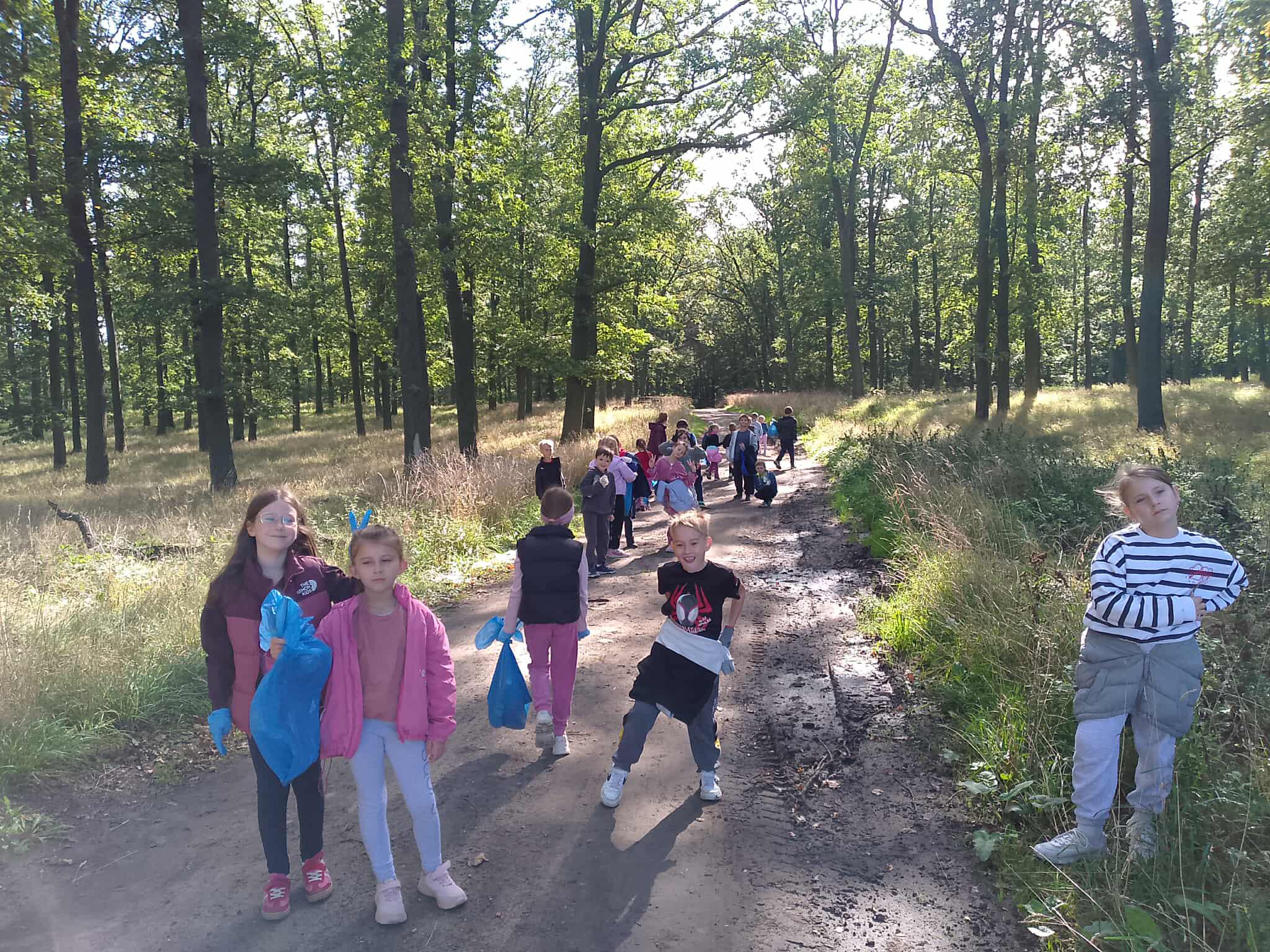W dniu dzisiejszym uczniowie z klas 1-3 brali udział w akcji sprzątania świata połączonej z powitaniem jesieni. W czasie wyprawy dzieci spotkały przedstawiciela straży leśnej, który korzystając z okazji przeprowadził z dziećmi krótką pogadankę.
